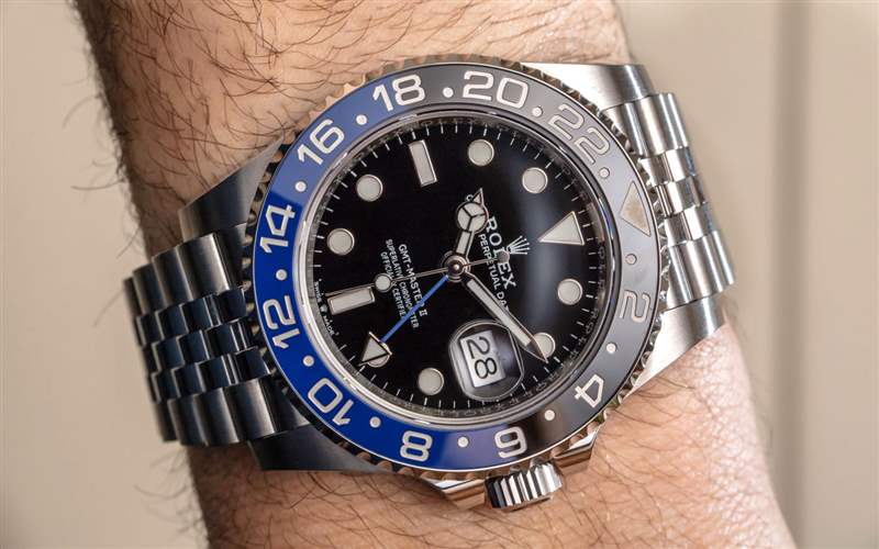 對于勞力士來說,擁有幾種不同口味的手表通常很重要——這就是為什么它在 2019 年推出了 GMT-Master II 126710BLNO 和 126710BLNR。每一款都是同一款手表,唯一的區別是雙色 Cerachrom 陶瓷表圈的顏色和 GMT 指針的顏色。表圈本身可雙向旋轉,表圈上的 24 小時標記與表盤上的 24 小時 GMT 指針配合使用,以了解其他時區的時間。因此,GMT-Master II 一直是旅行腕表的理想之選。