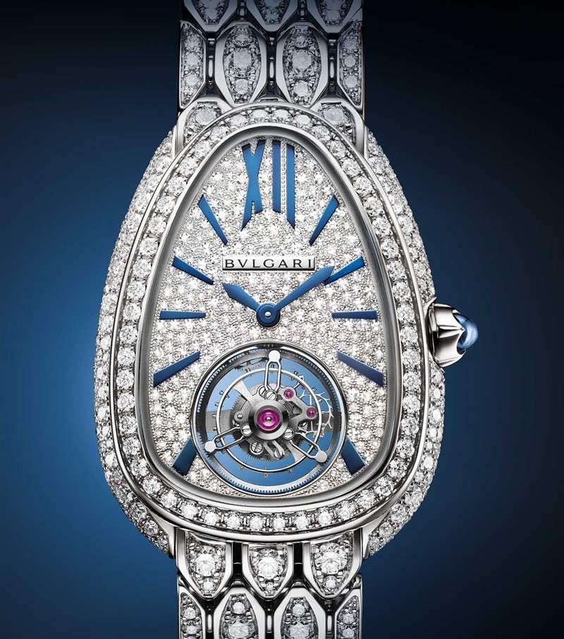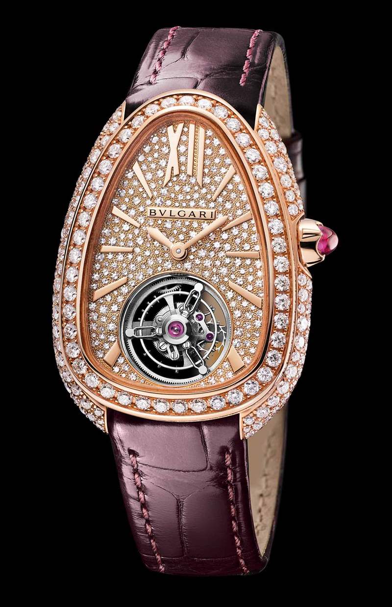在機(jī)械機(jī)芯中配備陀飛輪機(jī)制的女士豪華手表并不常見(jiàn),但肯定并非聞所未聞。眾所周知,女性和男性對(duì)奢侈手表的評(píng)價(jià)通常截然不同——零售商要求奢侈品牌為女性推出更復(fù)雜的手表也很常見(jiàn)。例如,從統(tǒng)計(jì)數(shù)據(jù)來(lái)看,大多數(shù)女性奢侈手表購(gòu)買者更喜歡石英機(jī)芯,因?yàn)樗鼈兏 ⒏鼫?zhǔn)確,而且?guī)?lái)的麻煩也少得多。這并不是說(shuō)女性從不關(guān)心復(fù)雜的機(jī)芯或陀飛輪。除了受過(guò)技術(shù)或工程培訓(xùn)的特定女性(她們傾向于欣賞更復(fù)雜的機(jī)械時(shí)計(jì)),女性接觸復(fù)雜時(shí)計(jì)的最常見(jiàn)方式之一是通過(guò)丈夫、男朋友、或自己對(duì)機(jī)械表感興趣并介紹給她的父親。因此,假設(shè)像 Bvlgari Serpenti Seduttori Tourbillon 手表這樣的手表是為擁有這一切的女朋友、妻子或女兒準(zhǔn)備的可能并沒(méi)有錯(cuò)……因?yàn)橥语w輪(盡管它與生俱來(lái)的美麗)實(shí)際上只是一種身份象征。