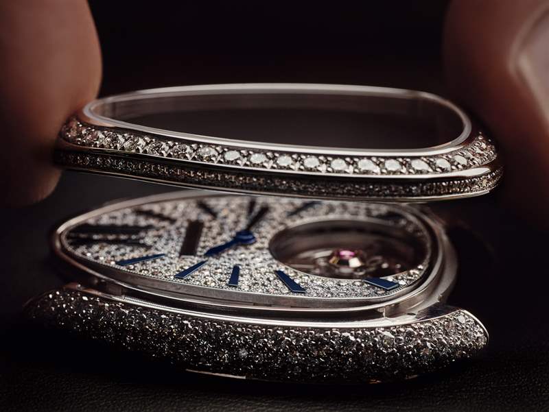 Serpenti Seduttori Tourbillon 內(nèi)部的基于陀飛輪的機(jī)芯據(jù)說(shuō)是“市場(chǎng)上最小的陀飛輪機(jī)芯”。這似乎意味著寶格麗可能不會(huì)創(chuàng)造任何記錄,但想要擁有最嬌小或最女性化的陀飛輪的女性不需要看起來(lái)很努力。我不確定 Bvlgari 是否需要非常努力地爭(zhēng)取獲得關(guān)注,因?yàn)槭袌?chǎng)上確實(shí)沒(méi)有那么多的女性陀飛輪——尤其是那些以女性而聞名的品牌。珠寶。我什至想不出任何可以與寶格麗競(jìng)爭(zhēng)的卡地亞女士陀飛輪手表。目前,這家意大利-瑞士制表商在相對(duì)利基的高端女性珠寶陀飛輪手表市場(chǎng)上占據(jù)了一席之地。