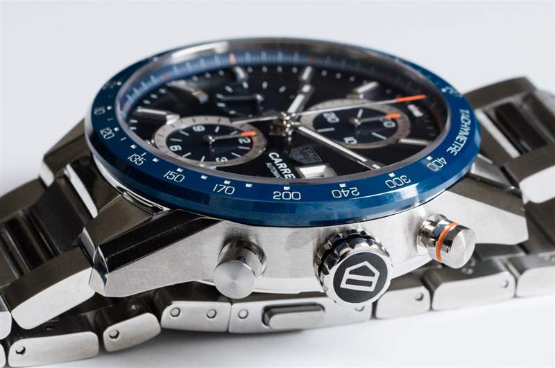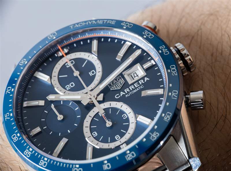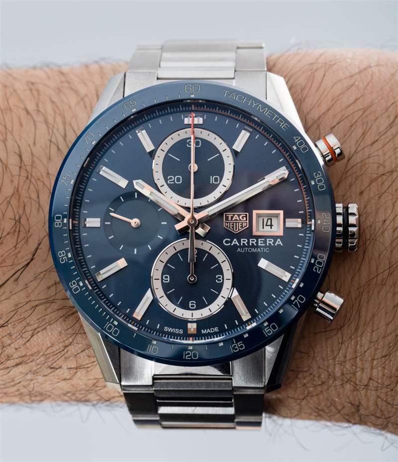 在我看來(也可能是 TAG Heuer 的看法),Carrera Chronograph Calibre 16 將成為集時尚、經濟實惠和永恒外觀于一身的量產車型。它是現代經典 Carrera Chronograph 和由 Jean-Claude Biver 經營的 TAG Heuer 發布的超現代 Carrera 手表的健康融合。將這款 Carrera Chronograph Calibre 16 與“昨天”的那些區別開來的最重要的設計元素之一是使用索引式時標,而不是使用兩位阿拉伯數字分鐘標記……作為時標。