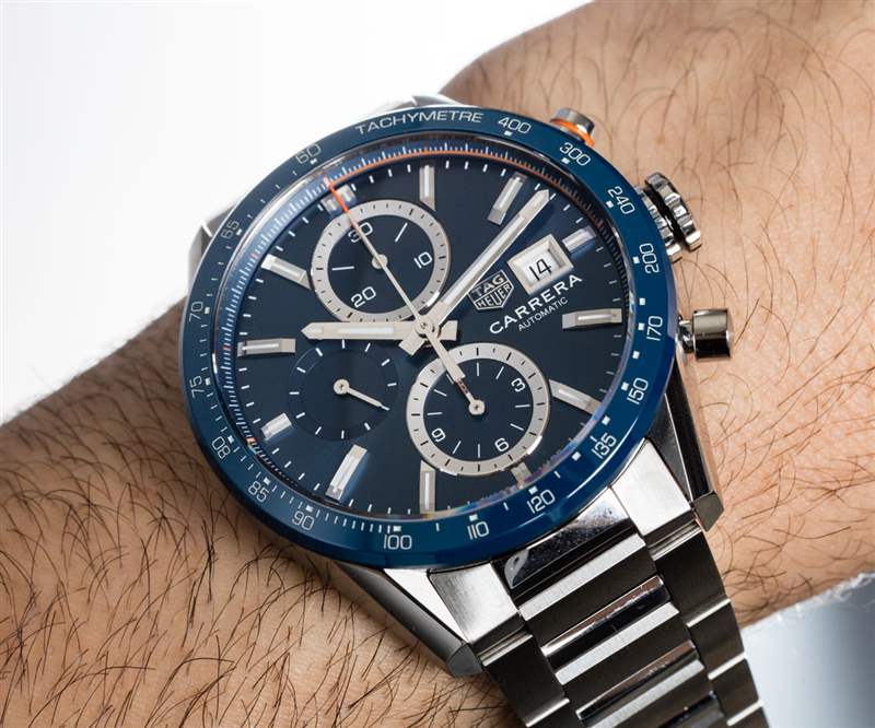 在我看來,Carrera 表殼的鋒利表耳在手鐲和表帶上總是看起來不錯。Carrera 手鏈與您所能獲得的一樣優雅,但看起來您最喜歡的建筑材料仍然是棱角分明的混凝土塊。它的外觀很漂亮,我認為它會吸引那些真正在手表上尋求陽剛之氣的人(盡管不是每個人都在尋找那個)。