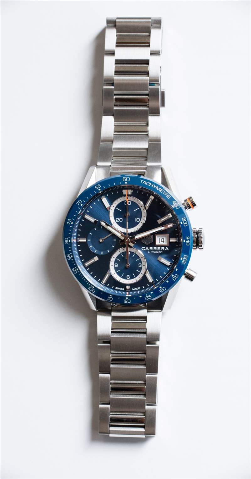 雖然手鏈很舒適,而且它確實有一個相對較小的折疊展開式表扣,但泰格豪雅可能會考慮在某個時候為 Carrera 手鏈添加更多功能。同樣,這并沒有錯,但今天的買家希望手鐲具有特殊功能,例如微調表扣、快速釋放系統或其他新穎性來幫助產品,但要更具特色。然而,我會說,從結構的角度來看,手鐲是優雅的,沒有面向外部的螺釘或銷釘,而且正如我上面提到的那樣,展開器并不比手鐲厚。我認為 TAG Heuer 可能想嘗試一下 Tudor 對彈簧式 Pelagos 手鏈所做的事情。這是一種讓表鏈既舒適又安全的有效方法,但此后沒有人嘗試過類似的事情。