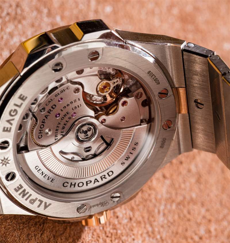 蕭邦 Alpine Eagle 內部是該品牌的內部機芯之一——01.01-C 型機芯。纖薄的 4Hz 自動上鏈機芯,動力儲存長達 60 小時。您還可以通過底蓋窗口查看機芯。該機芯非常受人尊敬,但它并非來自蕭邦生產的最精美的機芯系列。除了 Ferdinand Berthoud,蕭邦 LUC 機芯是最好看的。