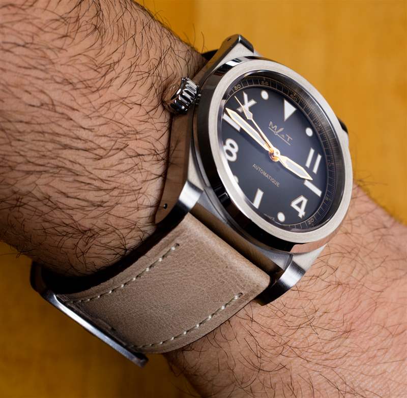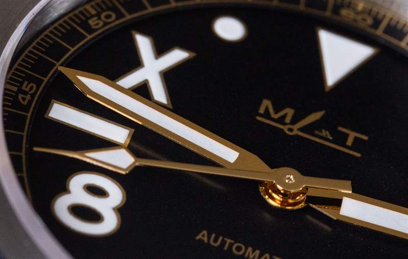 加利福尼亞,作為一個名字,之所以吸引我,是因為我來自加利福尼亞,但也因為我一直對加利福尼亞表盤的時計著迷。我相信這些都是從勞力士模型開始的,還有一些沛納海手表也有加州表盤。我在加州表盤上的歷史是模糊的,但我相信這個名字源于很久以前,加利福尼亞的一位手表經銷商從勞力士訂購了這種風格的表盤,并且“加州表盤”的名字被卡住了。什么是加州表盤?一般來說,它是一種設計,其中一半的時標寫成阿拉伯數字,另一半寫成羅馬數字。我不相信這種安排有任何功能上的原因,但它看起來確實很有趣。MAT 對加利福尼亞表盤的設計與您在經典勞力士或一些當代沛納海手表表盤上看到的不同,并且似乎將 Submariner 風格的表盤與加利福尼亞表盤美學相結合。MAT California 表盤上,10 點鐘和 2 點鐘的時標是羅馬數字,8 點鐘和 4 點鐘的時標是阿拉伯數字。其他小時標記是形狀。