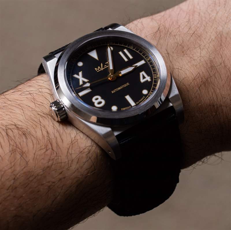 大膽的造型是 MAT California XL 的關鍵元素,這從表殼開始。在很多方面,California XL 都受到歷史悠久的運動手表的啟發,但比例更大。這可以在“XL 尺寸”的表圈、表耳和表盤元素中看到。為了忠實于一些具有歷史意義的加州表盤手表,MAT 選擇了一款新手機,這款手機采用金色設計,既時尚又易讀。放在表殼左側的表冠也不錯,因為它可以防止表冠在左手佩戴手表時粘在手腕上。表盤上的藍色發光涂料覆蓋了指針和時標,使黑暗清晰易讀。雖然 California XL 的核心是“時尚”產品,但它具有運動手表的精神和耐用性。這也許是,廣告訊息廣告信息結束