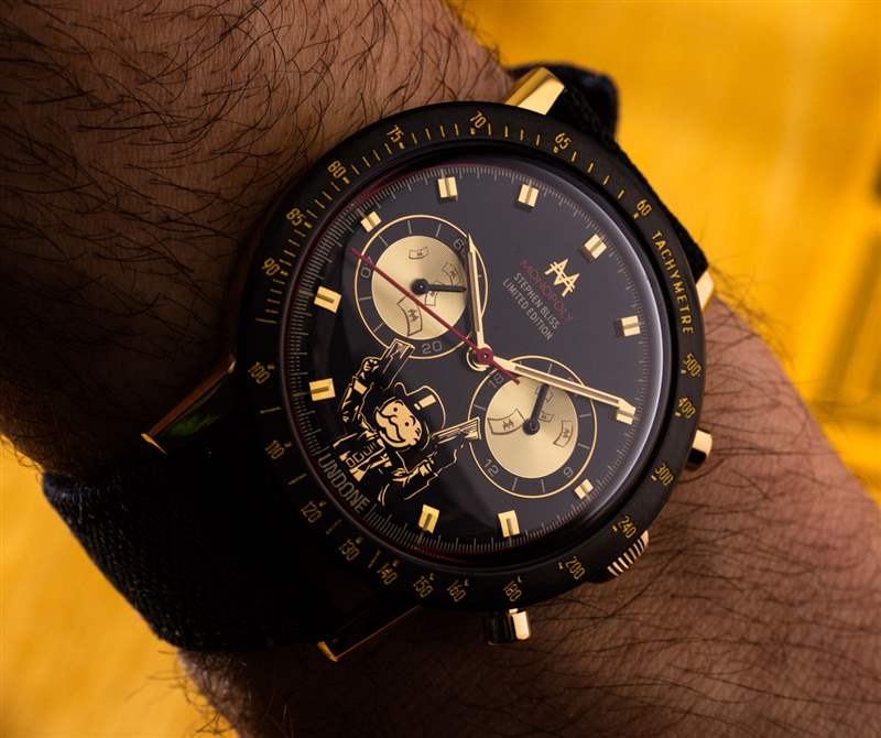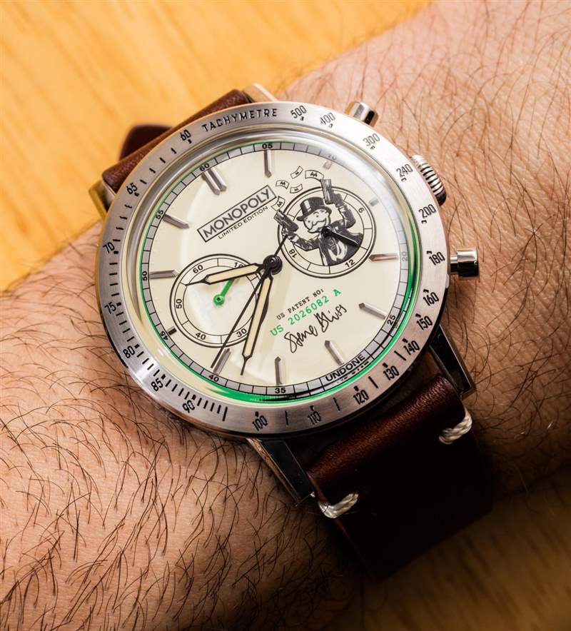 斯蒂芬·布利斯(Stephen Bliss)在 Monopoly MONEYMAN 手表上作為創意精神和平面設計師做得非常出色。他不是手表設計師,因此他需要圍繞特定限制和要求開發一個有趣的主題,以使體面的手表既清晰又不吸引人。同樣重要的是,大富翁手表看起來不像棋盤游戲紀念品(因為我認為此類產品的市場不會那么大)。就好像 UNDONE 接近斯蒂芬并說:“你如何讓大富翁變得很酷并與那些可能不記得他們最后一次玩完整游戲的人相關?” 確實是一項艱巨的任務。
