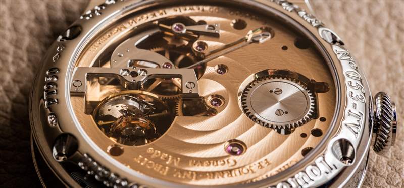 為什么要垂直安裝陀飛輪?可以這么說,在這個位置上,腕表中的陀飛輪使…… 更有意義。不是總感覺,而是更有意義(尤其是在保持擺輪振幅一致性時)。陀飛輪的標準水平位置最初是為懷表開發的,當它放在口袋里時,它具有垂直位置。佩戴時,手表往往處于更水平的位置,因此水平陀飛輪實際上并沒有發揮其平均重力拉力的預期效果。使用垂直安裝的陀飛輪,這更容易發生,從而使陀飛輪能夠以手表的形式“真正地做它的事情”。