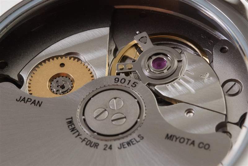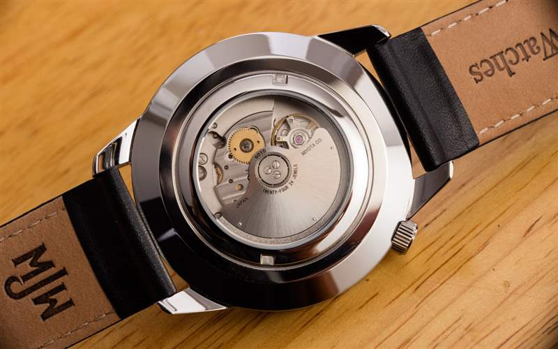 說到這一點,Accurate XL 配備了日本 Miyota 9015 自動上鏈機芯,透過底蓋可以欣賞到樂趣。這款 4Hz、兩天動力儲存的自動機械機芯性能不錯,其適度的裝飾有助于提升這款平價手表的手感。