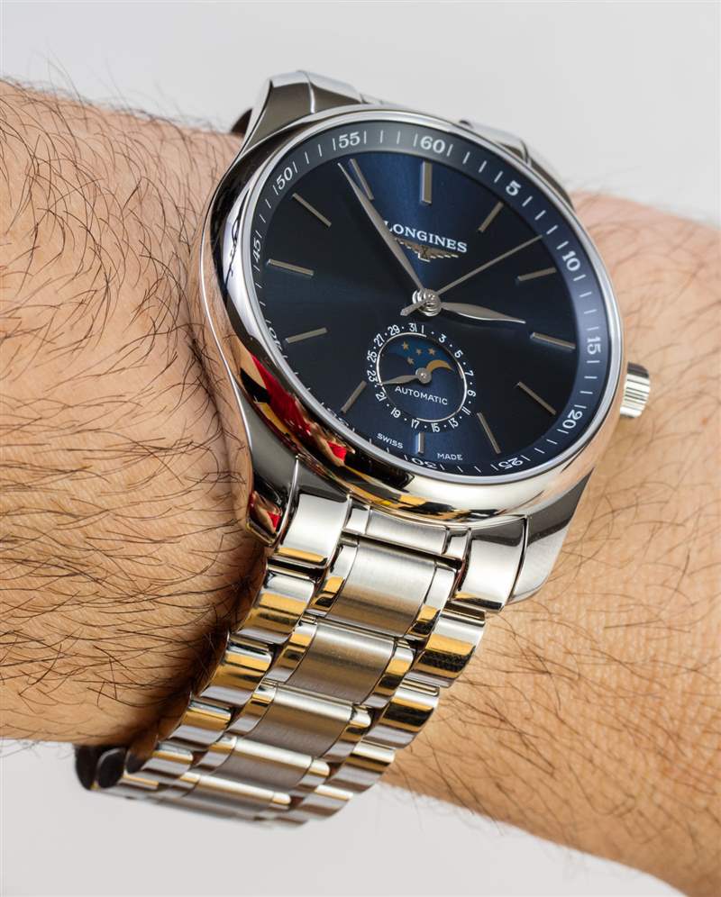 這個藍色表盤很可愛,雖然拋光的銀色指針在某些照明情況下會導致易讀性問題。浪琴表還為 Master Collection Moonphase 提供帶有“silver barleycorn”標記的表盤,藍色指針使表盤更加清晰易讀——但與這款優雅的藍色表款風格不同。鑒于 Master Collection Moonphase 有兩種表殼尺寸和多種表盤變體——對這些手表感興趣的人將受益于在零售環境中試戴幾款,然后再選擇適合他們的款式。