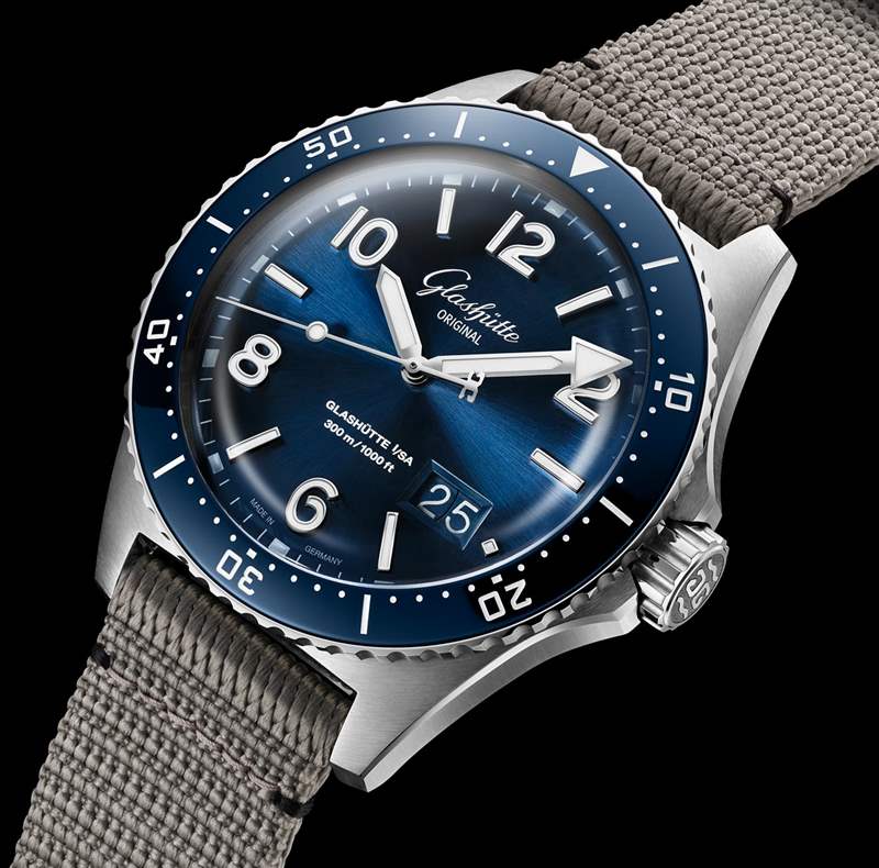 Spezialist SeaQ Panorama Date 表殼采用鋼制,采用品牌新造型,寬 43.2 毫米,厚 15.65 毫米。防水深度達 300 米,這是一款真正的潛水表,最后我們有一個來自 Glashutte Original 的旋轉表圈,帶有陶瓷鑲嵌物。防刮黑色陶瓷表圈設計帥氣而永恒,但在手表設計史上的這一點上并不是特別獨創。格拉蘇蒂原創贏得高端腕表尊重的地方在于表盤的執行力和易讀性。僅僅重現復古手表的外觀是不夠的,為了收取這么多錢,你需要讓它比原來的手表好得多。