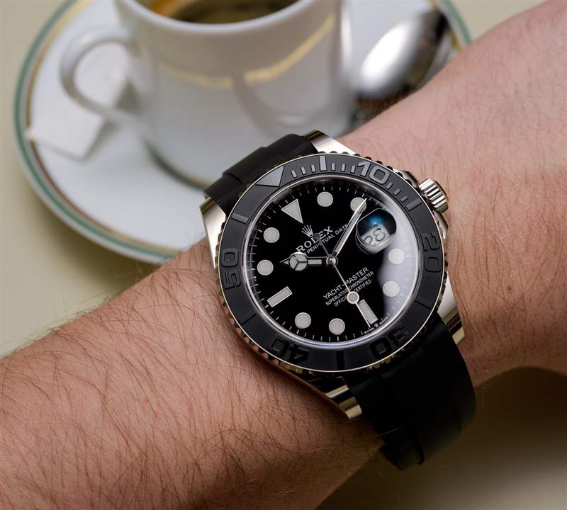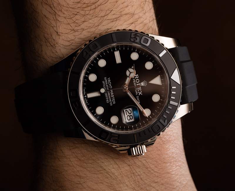 勞力士幾乎總是首先在高端手表中引入新的表殼和機芯,以便將它們涓涓細(xì)流進入市場并進行測試。勞力士很有可能最終會在未來的某個地方生產(chǎn)出 Yacht-Master 42 鋼制表殼。這真的完全取決于模型的成功。勞力士已經(jīng)很好地通過銷售彈性體 Oysterflex 表帶上的40 毫米寬和 37 毫米寬(金)游艇名表,為游艇名表注入了新的活力。Oysterflex表帶上的勞力士迪通拿也很受歡迎,再一次,所有這些手表都是金的。令人驚訝的是,在彩色高科技表帶上的高端運動手表市場種類繁多的時代,勞力士繼續(xù)通過將真正精美的金表搭配黑色橡膠表帶來扼殺它。