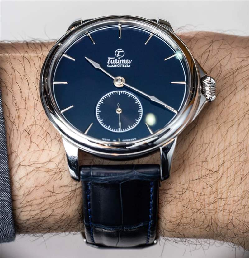 如今,正裝手表比運(yùn)動(dòng)手表更難銷售,主要是因?yàn)檫\(yùn)動(dòng)手表往往對(duì)許多奢侈手表購(gòu)買者具有更多的日常吸引力。正裝手表更漂亮,但通常提供的佩戴機(jī)會(huì)較少,除非您經(jīng)常穿著西裝或正裝??紤]到它的尺寸和它所提供的個(gè)性,像這樣的 43 毫米正裝手表可以兼作外觀優(yōu)雅的“牛仔褲和 T 恤手表”。我覺得今天大多數(shù)比較成功的正裝手表都屬于這一類,因?yàn)樗鼈儗?duì)業(yè)主來說更加時(shí)尚百搭。價(jià)格也很重要;大多數(shù)人不認(rèn)為 20,000 美元以上的金表適合休閑裝。將這個(gè)價(jià)格四分之一并提供鋼制表殼,現(xiàn)在你有了更多“日常吸引力”的東西?!?這就是為什么我認(rèn)為 Tutima 應(yīng)該能夠憑借 Patria Steel 如此成功,尤其是這款可愛的 Patria Admiral Blue 表款,搭配藍(lán)色鱷魚皮表帶和琺瑯表盤。