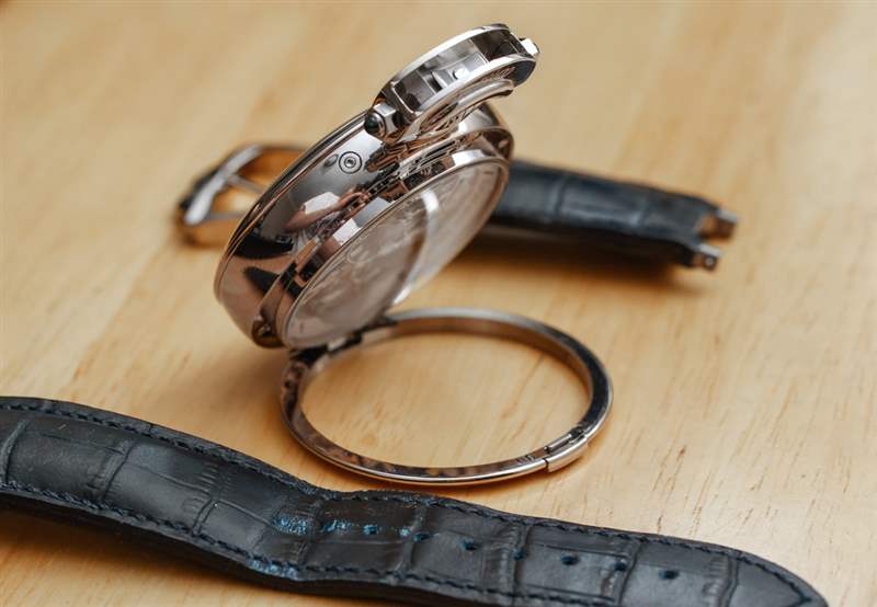 表冠所在的表殼頂部的“緞帶”顯然是為了喚起懷表的外觀。多年來,我一直在反復思考這種設計是否對我個人有吸引力。真正賣給我的是看到別人的手表。有趣的是,您對戴在手腕上的手表或站在您旁邊的人的感知會有多么不同。播威制作精致的東西的能力確實值得他們為之喝彩。