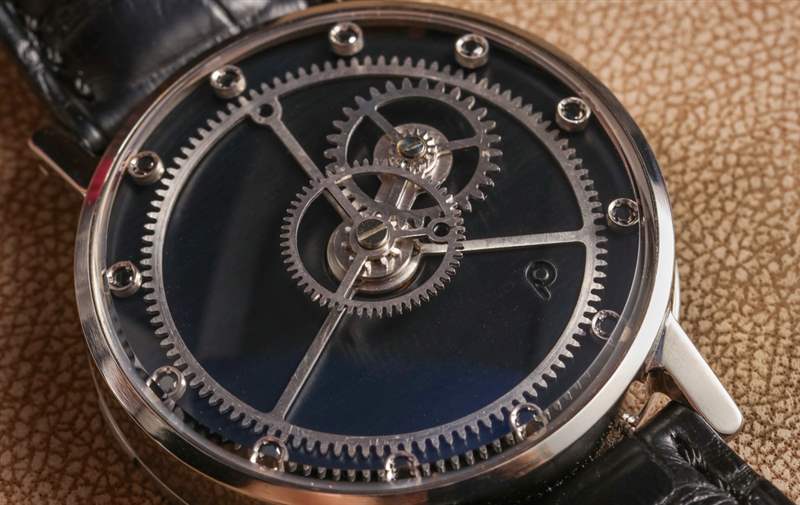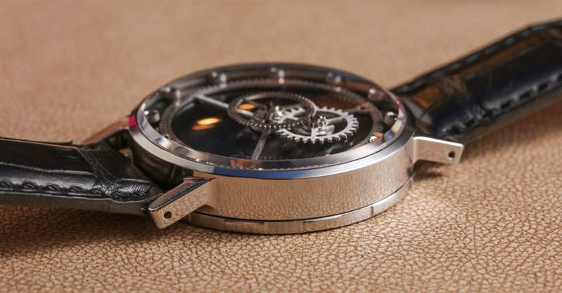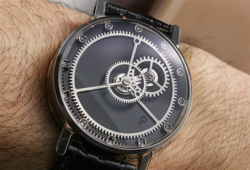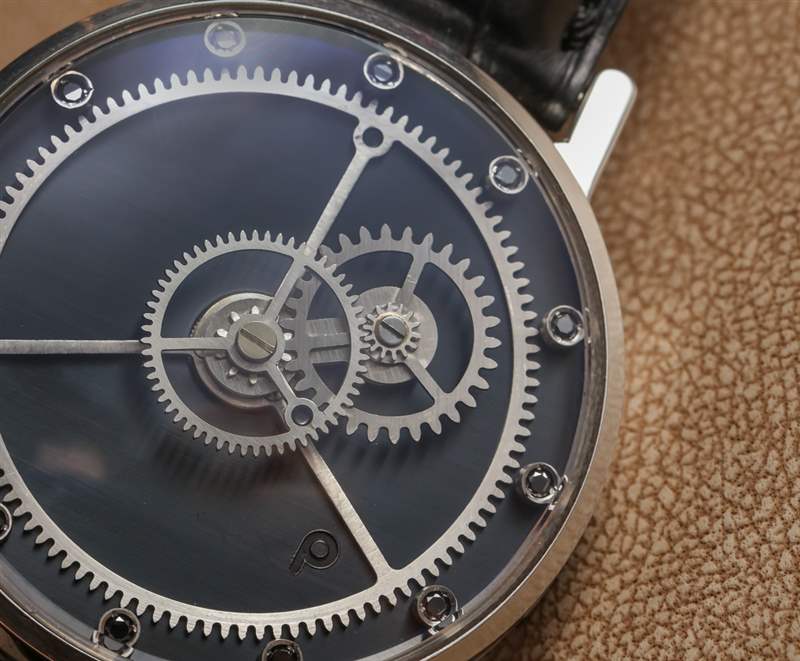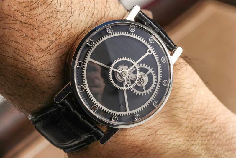 軌道表盤之所以有趣,有幾個原因。如果您遵循分別指示分鐘和小時的較大和較小齒輪中的孔(其中可能嵌入石頭)的路徑,則可以正常讀取時間。沒有秒指示器。齒輪自然需要始終在移動,因此它們會產生一個動畫表盤,其外觀在一天中會發生變化。這種吸引力無法真正轉化為靜態攝影,因此您需要概念化享受定期更換的表盤是什么感覺。我過去戴過這樣的手表,至少可以說很有趣。易讀性不在“工具表級別”,但也不錯,表盤外圍有一組時標,可幫助佩戴者閱讀時間。