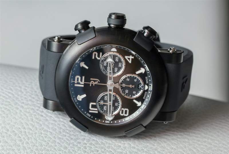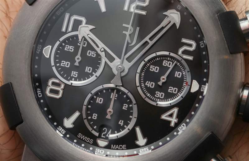 RJ 提供四種基本材料樣式的 Arraw 計(jì)時(shí)碼表,不考慮表殼尺寸、各種表盤顏色(但大多數(shù)是黑色)和鉆石裝飾選項(xiàng)。基本型號(hào)可能是最受歡迎的,它是鈦金屬的拍照版本。RJ 還生產(chǎn)雙色 Arraw 計(jì)時(shí)碼表,主要采用鈦金屬表殼和 18k 紅金表圈,表盤顏色相匹配。當(dāng)然也有全 18k 紅金款。Tedeschi 不會(huì)忠實(shí)于他在 Hublot 的時(shí)間,如果不創(chuàng)造 Arraw 計(jì)時(shí)碼表的全黑陶瓷版本 – 它比鈦合金表款高出 2,400 美元(零售價(jià)14,300 美元)(如果你問我的話,有點(diǎn)高)。