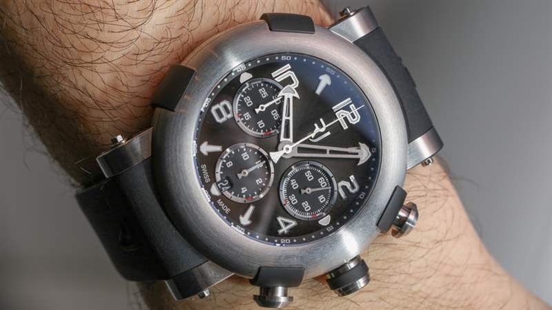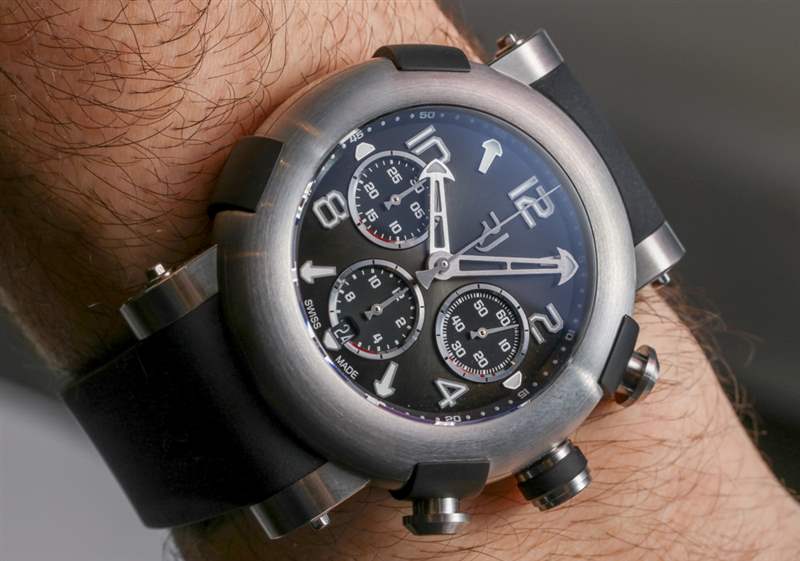在風(fēng)格方面,Arraw 計(jì)時(shí)碼表大量借鑒了一系列現(xiàn)有的 Romain Jerome 手表元素,手表本身將提供兩種尺寸(45 毫米和 42 毫米寬)。這個(gè)案子很大程度上借鑒了 RJ 的泰坦尼克號(hào) DNA 案子,我仍然認(rèn)為這是 Yvan Arpa 做過的最好的案子之一。表殼采用從其他 RJ 手表借來的元素進(jìn)行了一些現(xiàn)代化改造。我可以自信地說,這個(gè)案例比一些傳統(tǒng)的 RJ 案例要舒適得多。例如,Moon Invader 手機(jī)殼佩戴起來從來都不是很舒服。我確實(shí)認(rèn)為現(xiàn)代 RJ 品牌將比過去更多地關(guān)注人體工程學(xué)。廣告訊息廣告信息結(jié)束