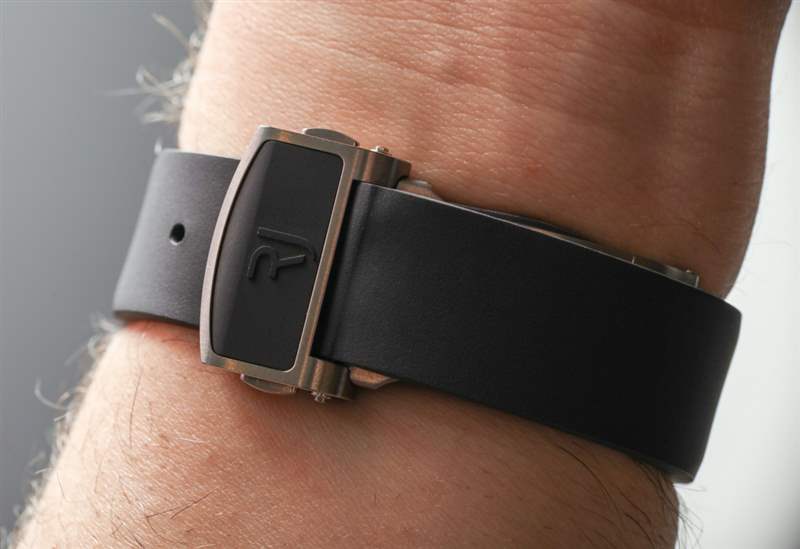 說到表帶,Arraw Chronograph(最后)包括一個(gè)快速調(diào)節(jié)系統(tǒng),可以取下表帶并用另一個(gè)替換它。如果我沒記錯(cuò)的話,這是通過按下凸耳兩側(cè)的兩個(gè)螺旋式推動(dòng)器來完成的。展開扣附近有一個(gè)相應(yīng)的杠桿,可以將其釋放。RJ 打算提供“多種可互換的橡膠和鱷魚皮表帶”,消費(fèi)者可以使用這些表帶為 Arraw Chronograph 提供盡可能多的視覺多樣性。