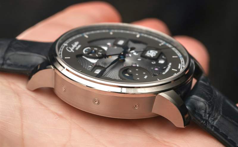 對于 Senator Excellence Perpetual Calendar,格拉蘇蒂原創(chuàng)使用 42 毫米寬、12.8 毫米厚的表殼(當(dāng)然厚一點)。此型號使用 18k 白金,與外露機(jī)芯表面的色調(diào)相匹配。Steel 可能是一個不錯的選擇,因為它可以讓更多人更容易使用這款手表,但我相信 Glashutte Original 至少知道,這個版本的 Senator Excellence Perpetual Calendar 將在其客戶吸引力中占據(jù)優(yōu)勢。