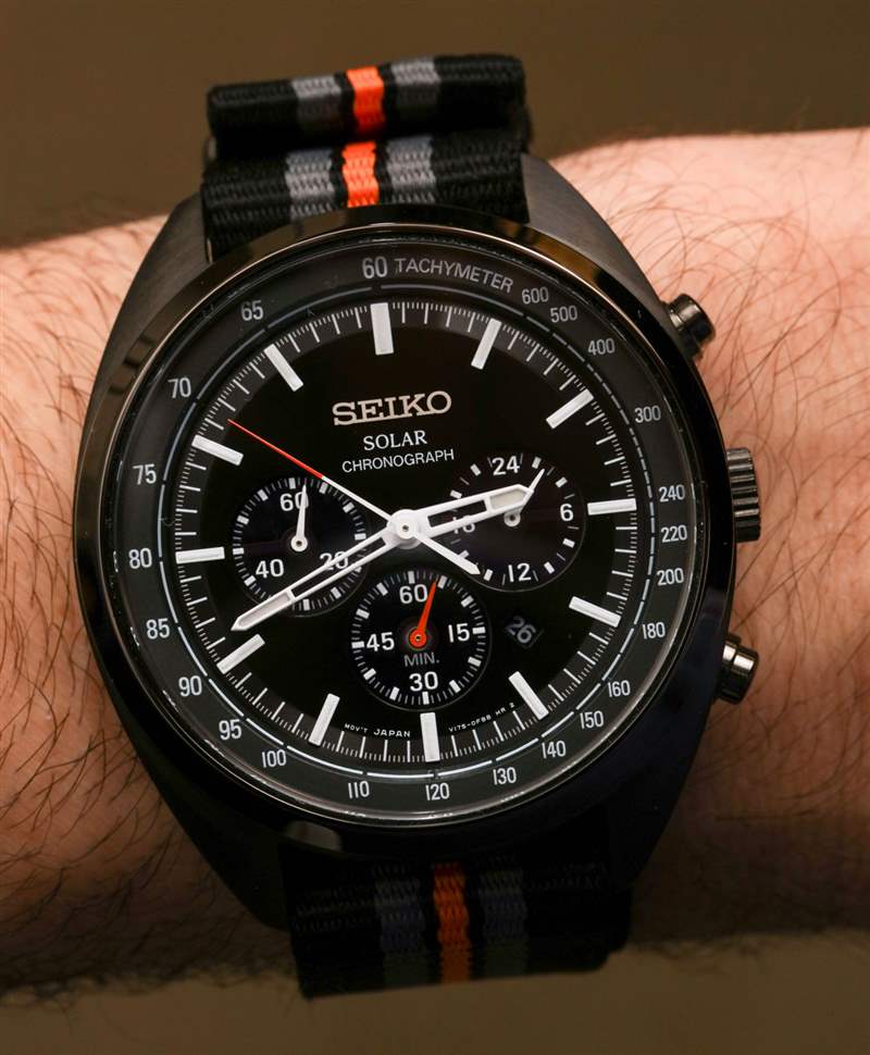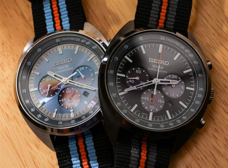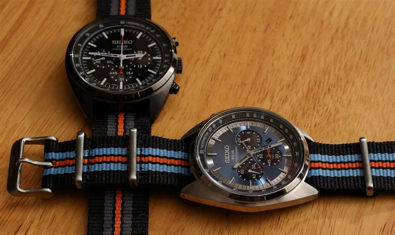 Recraft Solar Chronograph SSC667 和 SSC669 僅在顏色上有所不同,但由于采用 IP 涂層黑色外殼,SSC669 的價(jià)格要貴 25 美元。該型號(hào)的表盤是黑色的,帶有高對(duì)比度的白色指針和時(shí)標(biāo)。橙色作為強(qiáng)調(diào)色看起來不錯(cuò)。SSC667 采用天然精鋼表殼和略帶光澤的金屬藍(lán)色表盤。精工通過使指針變?yōu)榛疑珌泶_保指針適合主題,但也通過使指針和時(shí)標(biāo)在紋理上啞光來做正確的事情,以免反射光線。在我看來,這兩款都是漂亮的手表,黑色的 Recraft Solar Chronograph SSC669 更加強(qiáng)壯和陽(yáng)剛,而 SSC667 的吸引力更加現(xiàn)代和俏皮。現(xiàn)在我們所需要的只是讓收藏家想出一些粘人的名字,讓這些精工 Recraft 手表在命名方面更具個(gè)性。