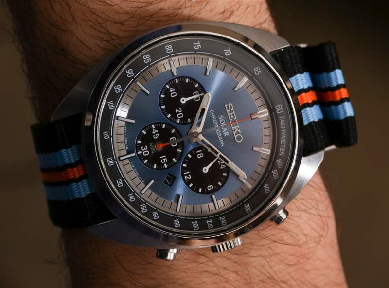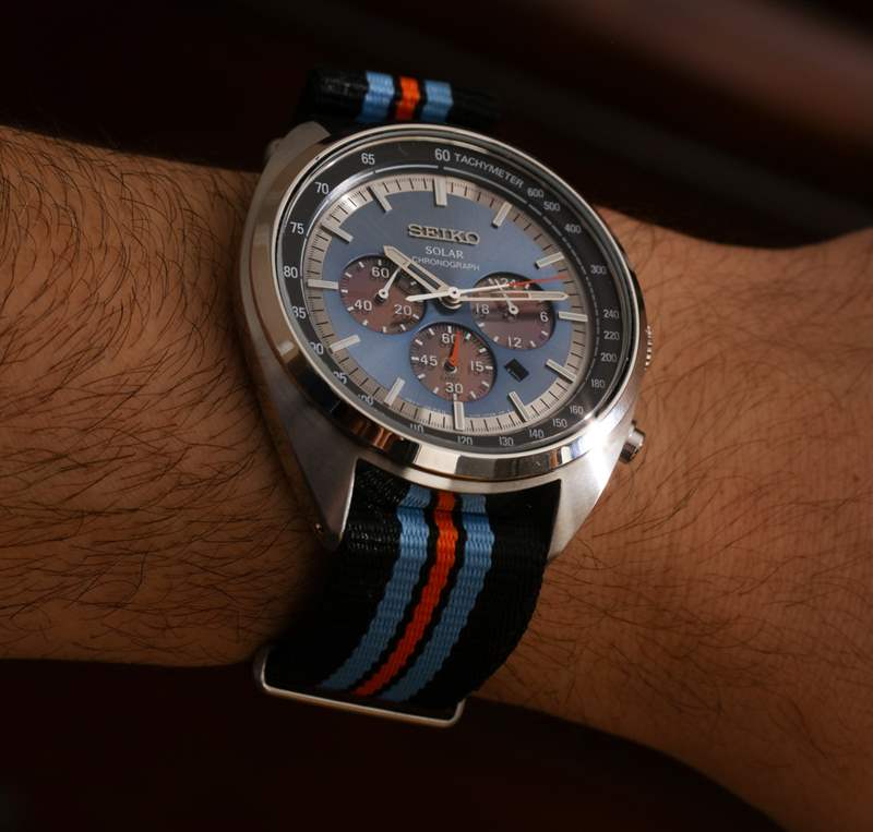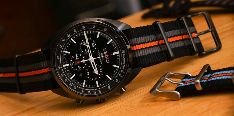 精工將手表與幾乎沒有眩光的扁平 AR 涂層礦物水晶配對(duì)。這對(duì)我來說是錦上添花,也是表盤看起來如此出色的原因。傾斜的拋光表圈通向拉絲和拋光(側(cè)面)酒桶形鋼制表殼,SSC669 提供黑色,SSC667 提供天然鋼。表殼簡(jiǎn)單但制作精良,配有對(duì)比拋光和視覺美感,使其感覺比實(shí)際更薄(約 12.5 毫米厚)。表殼寬 43.5 毫米(防水深度達(dá) 100 米),非常舒適,搭配這些彩色尼龍 NATO 風(fēng)格的肩帶。這實(shí)際上是我記得的第一款帶有北約風(fēng)格表帶的精工手表。雖然 SSC667 和 SSC669 是 2018 年的新型號(hào),它們是以前可用的 Seiko Recraft SSC569 的修訂版——我覺得它沒有那么吸引人。這是一塊不錯(cuò)的手表,但感覺就像精工試圖將復(fù)古賽車計(jì)時(shí)碼表與正裝手表結(jié)合起來,我發(fā)現(xiàn)結(jié)果有點(diǎn)尷尬。這些 SSC667 和 SSC669 型號(hào)具有不同的表盤和表帶,讓世界變得與眾不同。廣告訊息廣告信息結(jié)束