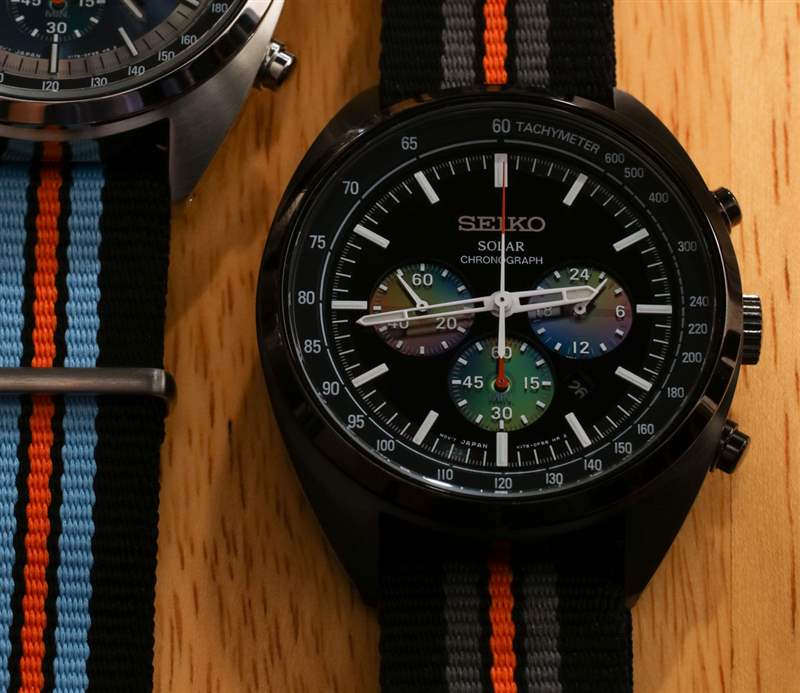 作為手表愛好者,我非常感謝精工在這些 Recraft Solar Chronograph 手表的表盤設(shè)計(jì)上付出了多少努力。深度是通過具有各種層以及應(yīng)用的小時(shí)標(biāo)記來創(chuàng)建的。表盤周圍是一個(gè)凸起的rehaut,帶有最小的測(cè)速刻度,指針都具有出色的對(duì)比度,計(jì)時(shí)碼表子表盤略微凹陷。精工也沒有在表盤上添加任何僅僅是裝飾性的東西。這些都是非常復(fù)古的工具手表,其吸引力和缺乏裝飾元素是其中的一部分。請(qǐng)注意,這與許多其他 Seiko Recraft 型號(hào)形成鮮明對(duì)比,后者非常專注于重現(xiàn)過去更具藝術(shù)性的表盤。實(shí)用手表愛好者會(huì)欣賞這種精工對(duì) Speedmaster 美學(xué)的詮釋。